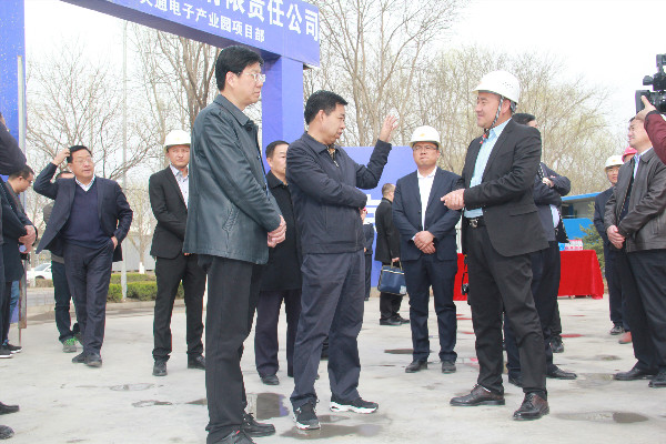 2019年3月27日下午,平?jīng)鍪形睍洝⑹虚L(zhǎng)王奮彥、市委常委、崆峒區(qū)委書記陳鐸、市政府秘書長(zhǎng)薛曉宏等市委領(lǐng)導(dǎo)及平?jīng)鍪泄I(yè)園區(qū)管委會(huì)主任馬春寧等園區(qū)主要領(lǐng)導(dǎo)一行人蒞臨甘肅振興·天通電子(物流)產(chǎn)業(yè)園項(xiàng)目施工現(xiàn)場(chǎng)指導(dǎo)工作。